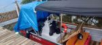 The next morning we had to make some repairs. We had to put a tarp over the back of the boat to keep the light rain off of the electrical as things got fixed. We thought we had to replace the pump, but we found the cause of the problem and were able to fix it. It is nice when we can fix something and save a bundle of money.