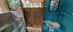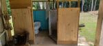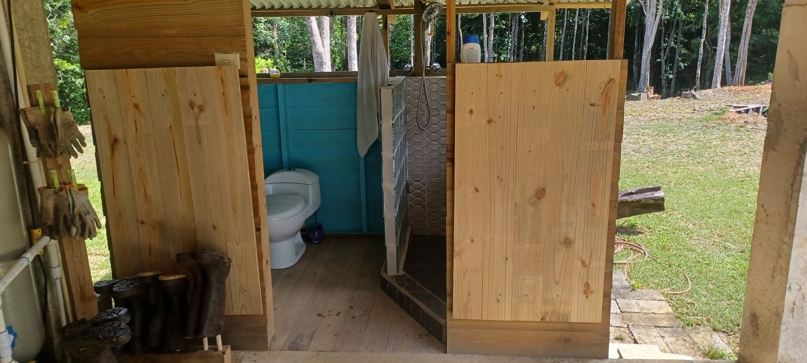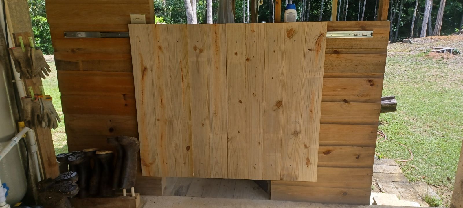 We added solid barn doors to the outdoor bathroom. Before we had a simple curtain. It worked fine, but if it was windy it felt odd, even though it was clipped at the bottom and wasn't going to fly open.